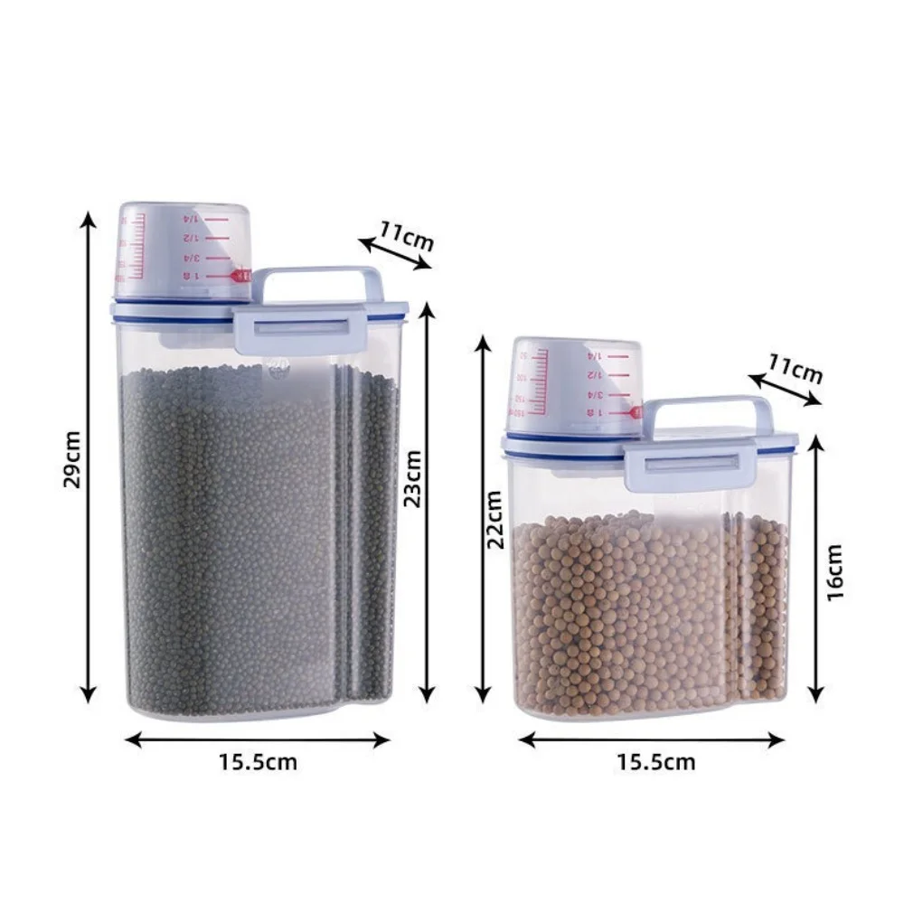 Dog Cat Food Storage Container Airtight Moisture Plastic Pail With Measuring Cup Portable Pet Dog Snack Storage Box Pet Supplies