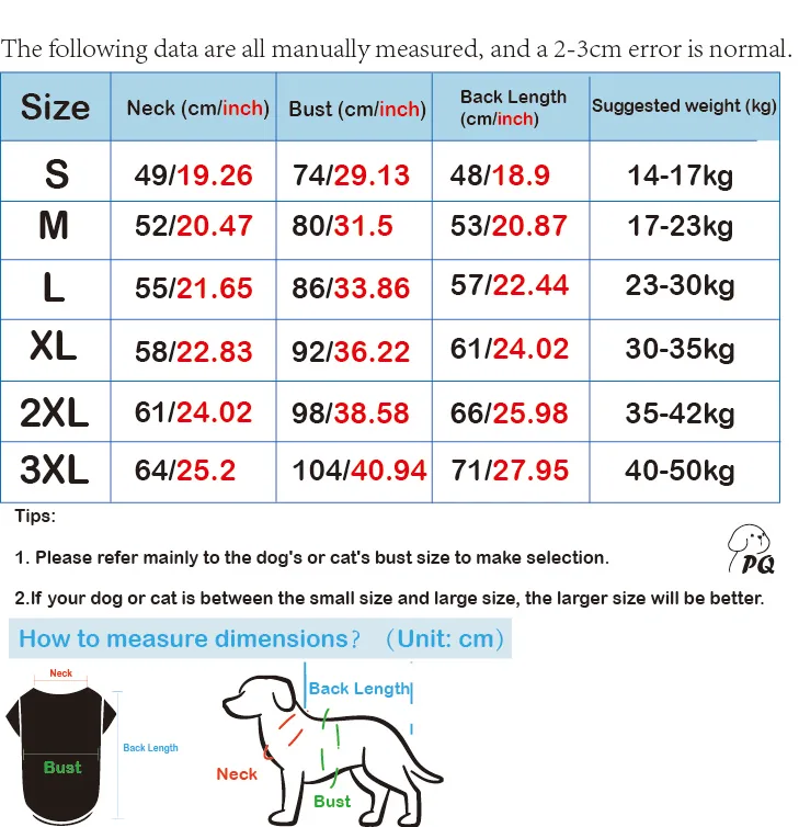6.Before purchasing, please measure the pet's head circumference, neck circumference, chest circumference, and back length to avoid buying the wrong size.